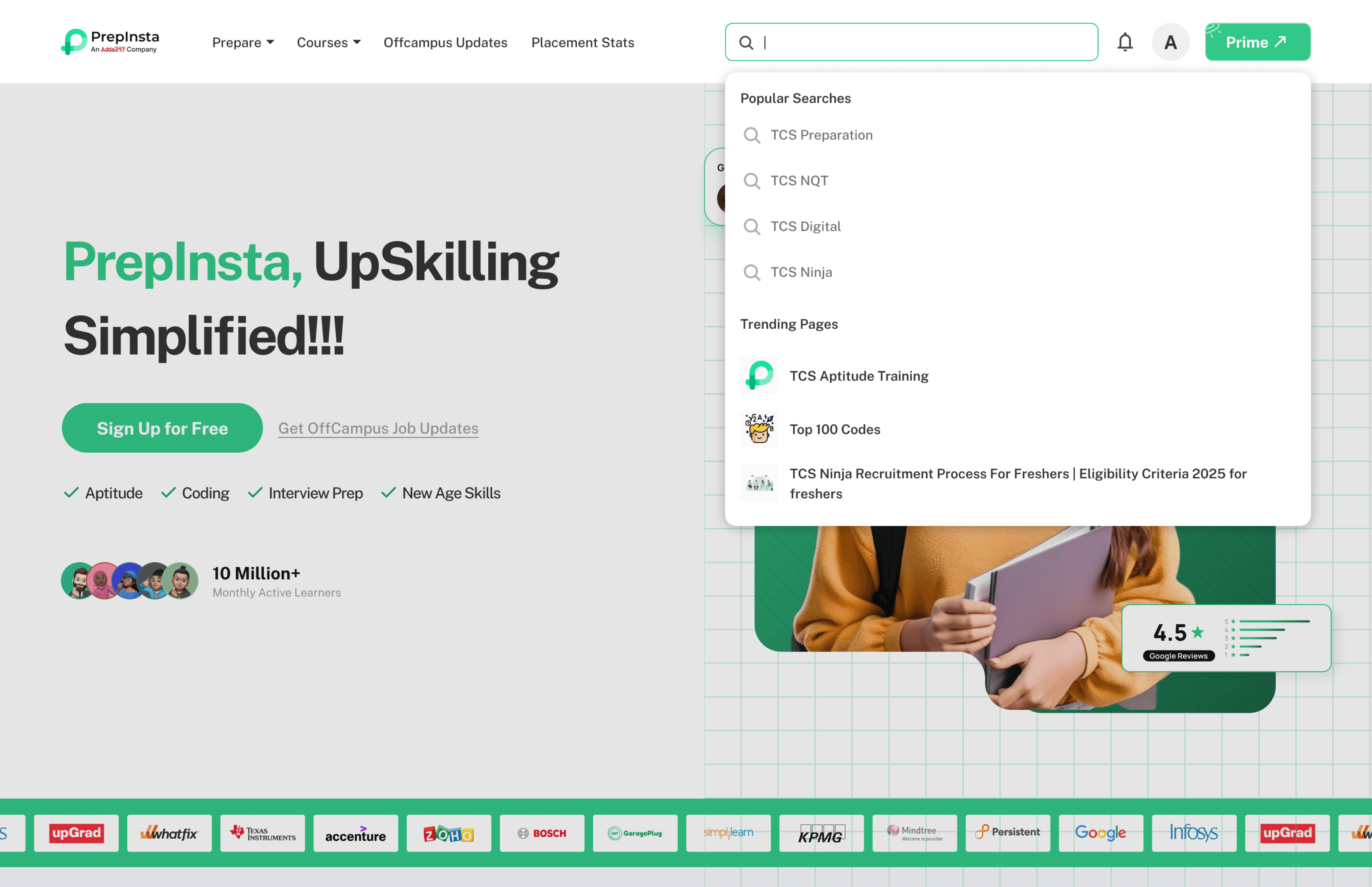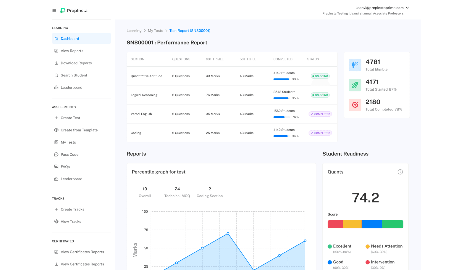 Optimus is PrepInsta’s AI platform that helps institutions monitor student learning and conduct online assessments for improved placement preparation.