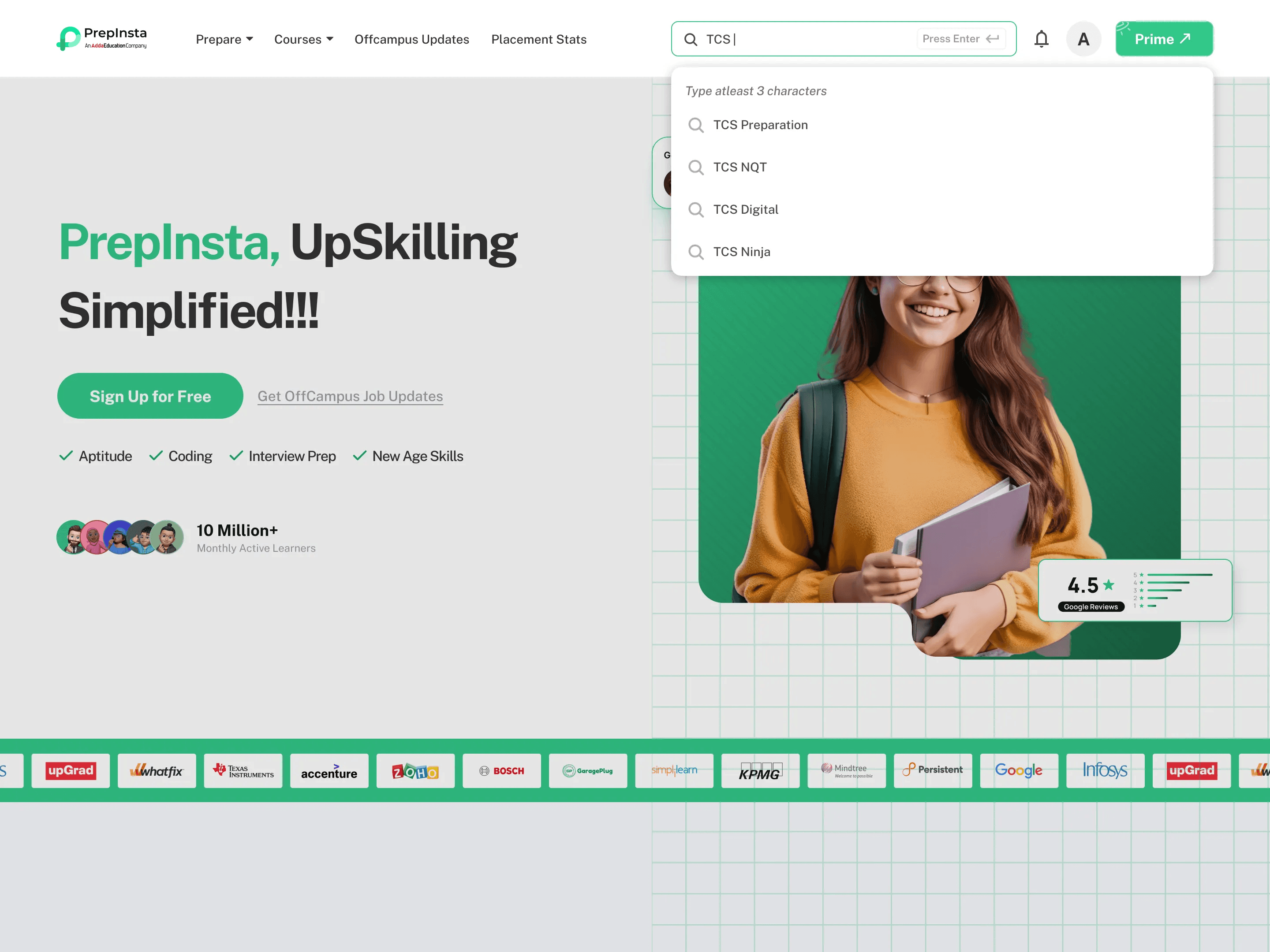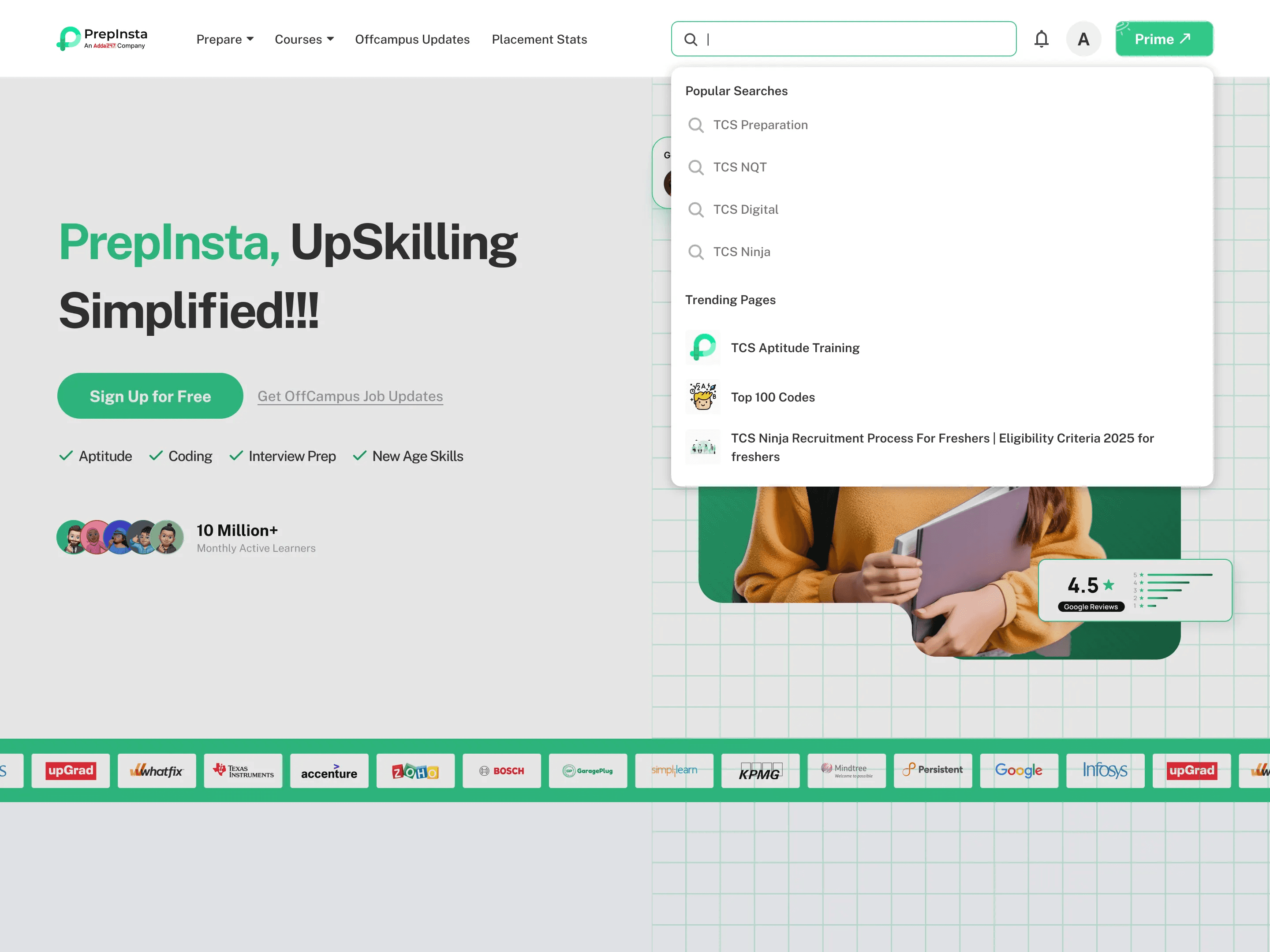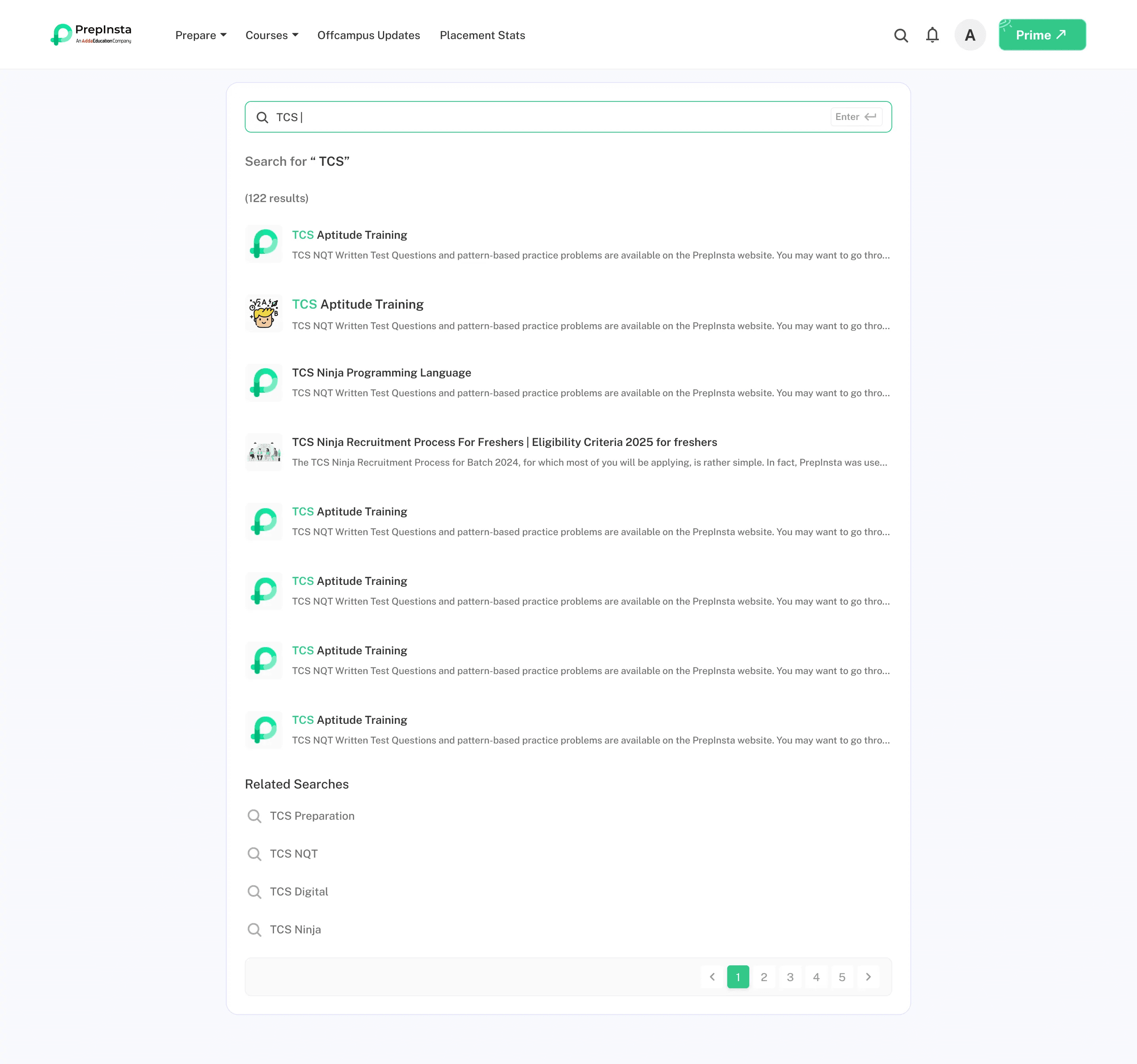 PrepInsta Search functionality